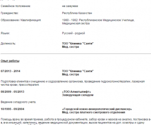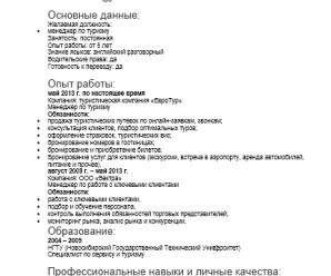 Образец резюме, пример резюме, бланк резюме