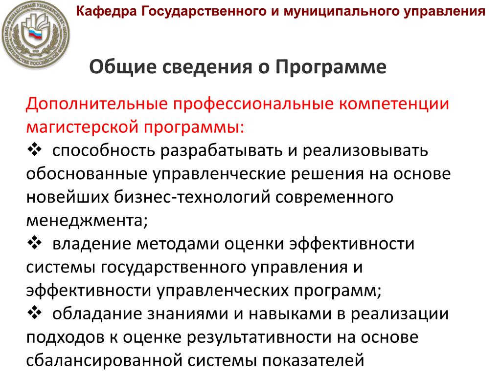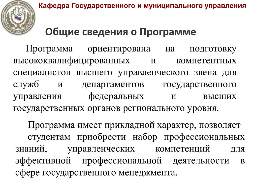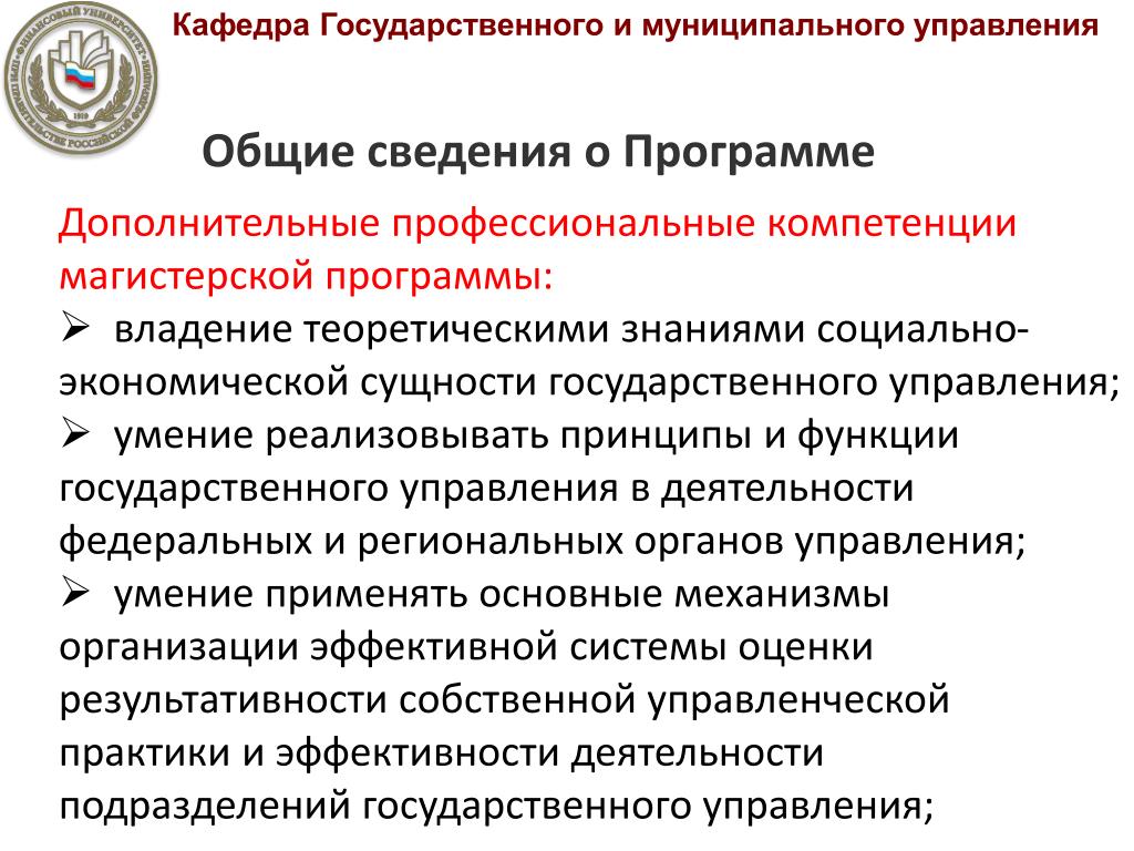 - Научные основы и пути совершенствования государственного управления (на примере РФ, федерального округа, субъекта федерации, или же на примере отрасли национальной экономики, Министерства, ведомства и т.д.) (по выбору студента).