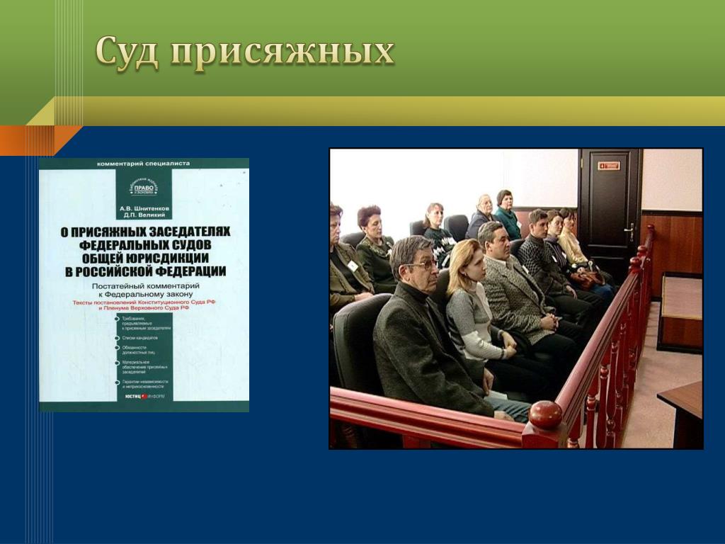 Когда граждане из всех слоев общества выбираются для участия в суде, заслушивания свидетельских показаний в юридических спорах и вынесения вердикта по делу, тогда это то, что можно определить как присяжных. Присяжные просто решают, виновен или невиновен обвиняемый в соответствии с предъявленным обвинением или доказанным (Anon, What is a jury 2002)