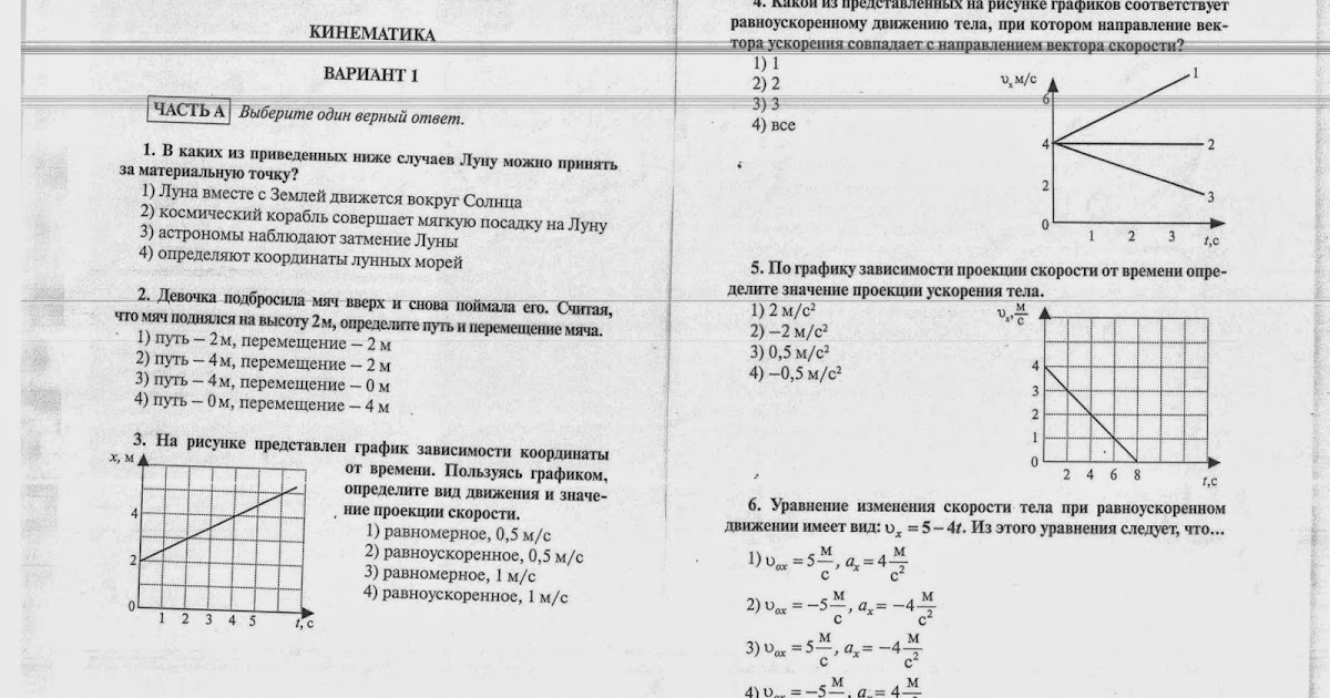 Физический модуль 1 «Кинематика» Практический тест по физике для 11-го класса охватывает следующие темы: