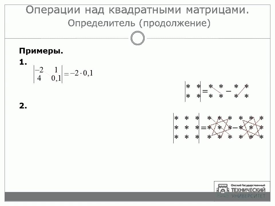 Определение. Численная характеристика квадратной матрицыназывается ее определителем.