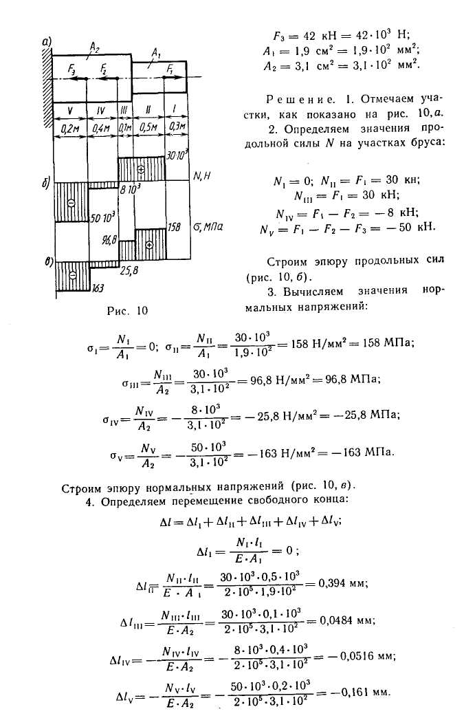 Построим эпюру нормальных напряжений (см. формулу (3.3)).