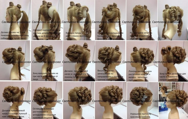 косу или перехвачены несколько раз по всей длине стильными булавками.