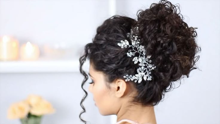 Свадебная прическа с упругими локонами и аксессуарами для волос