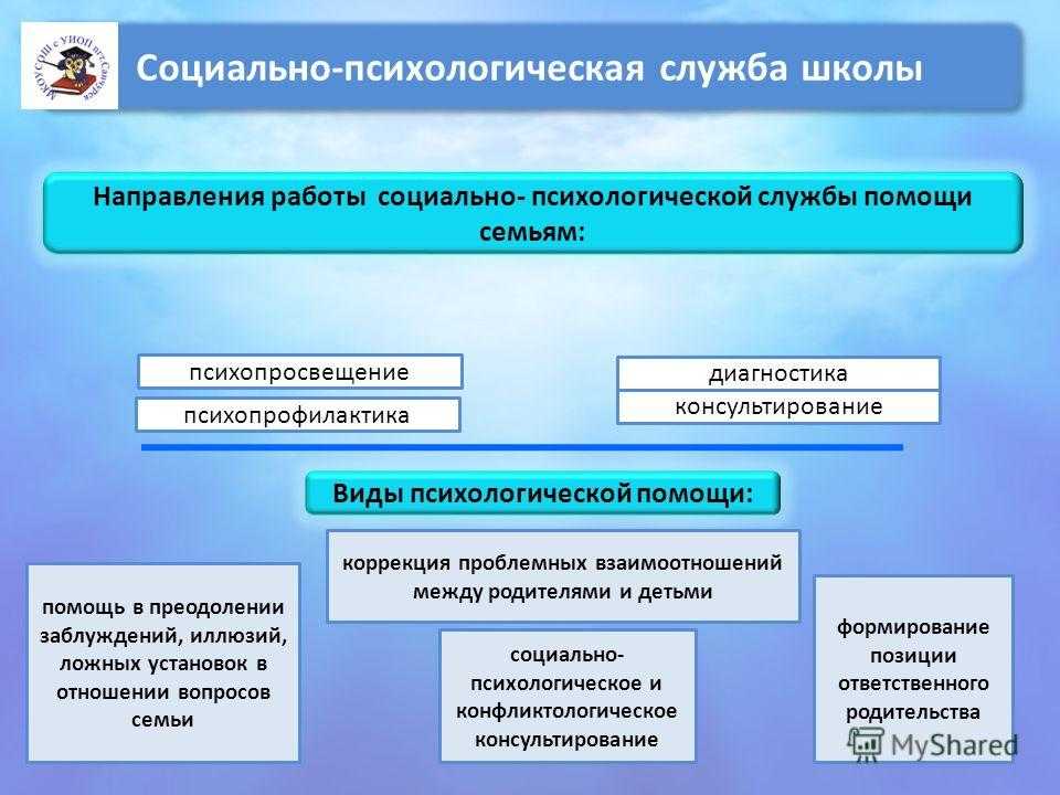 Характер психологической помощи может быть связан с воспитанием ребенка, профессиональной ориентацией старших школьников, определением готовности ребенка к школе, выявлением причин трудностей в обучении и др.