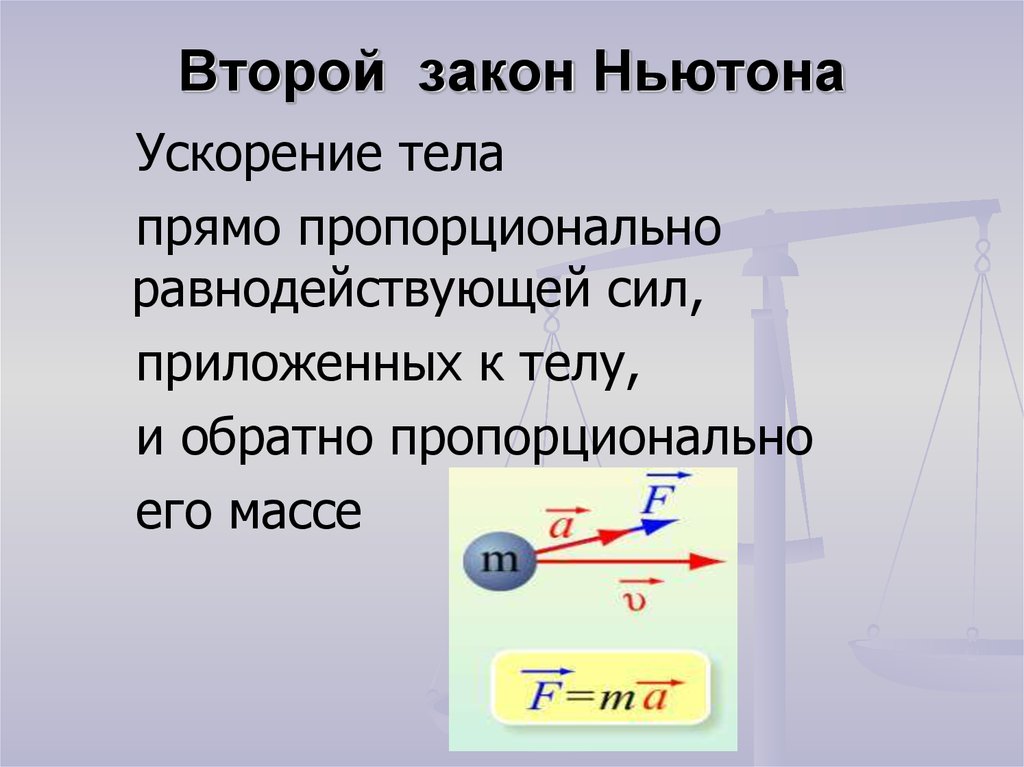 Сила пропорциональна массе и ускорению; если сила удваивается, ускорение также удваивается.