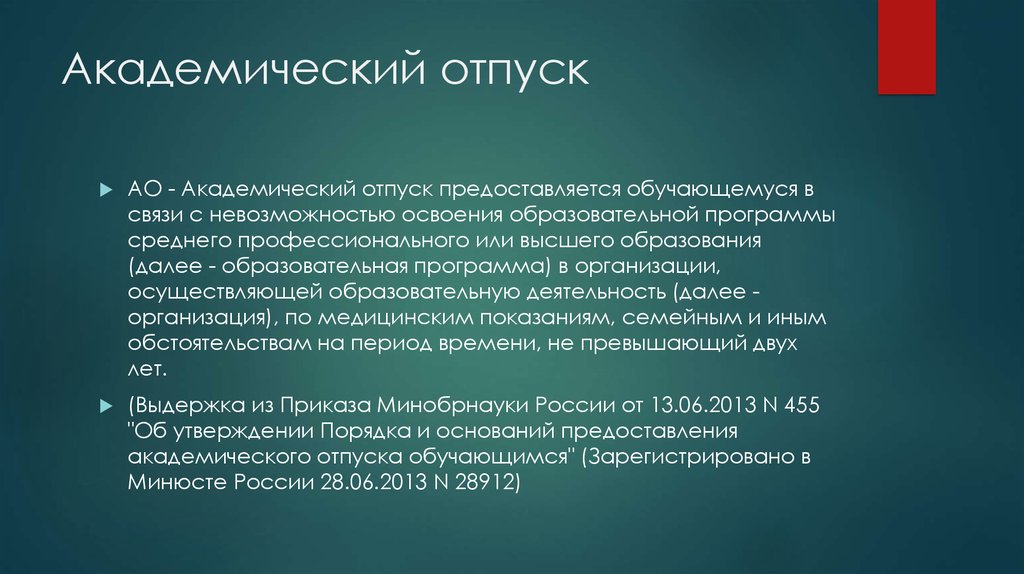 - Академический отпуск – это возможность сделать перерыв по обоснованным причинам.