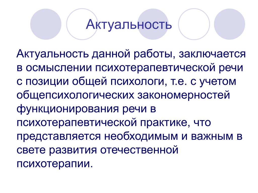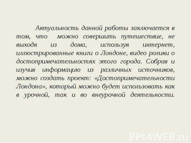 Под термином «актуальность» понимается обоснование того, почему работа написана именно на выбранную студентом тему в данное время.
