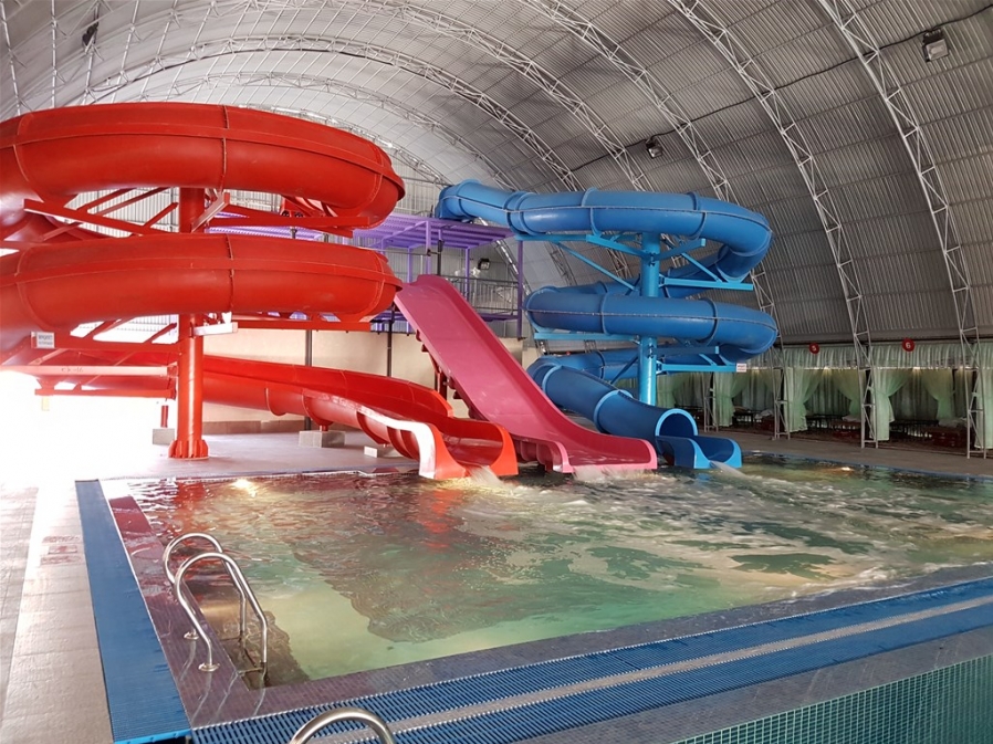 Сам аквапарк клас, горки, басейн, шезлонги все сподобалось, є все спа, баня, кухня, ціни на іжу не великі, на пиво трохи дорого, бар в басейні обслуговування дуже довго,одна дівчина робе піцу і вона ж обслуговує.