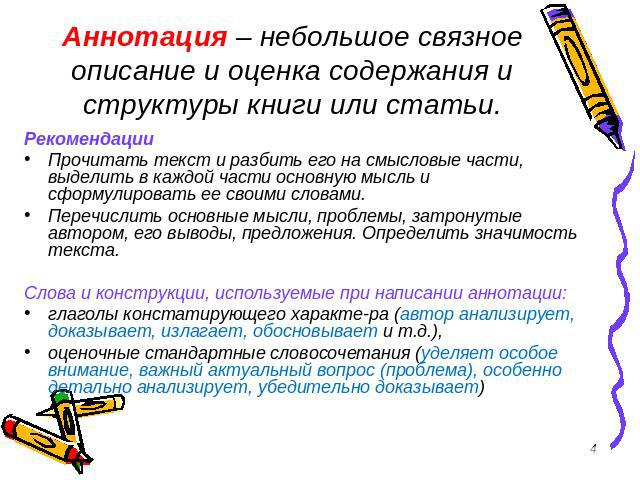 - 1 Что такое аннотация, ее цель