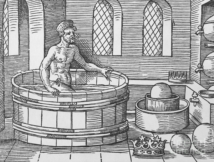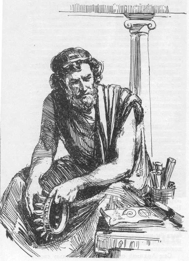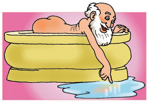 Научные исследования, — повествует Витрувий, — поглощали Архимеда до такой степени, что ему приходилось напоминать про сон и пищу. Даже в купальне во время растираний он продолжал чертить на песке геометрические фигуры. Однажды во время купанья, — продолжает Витрувий, — Архимед размышлял о трудной задаче, поставленной перед ним царем Гиероном.
