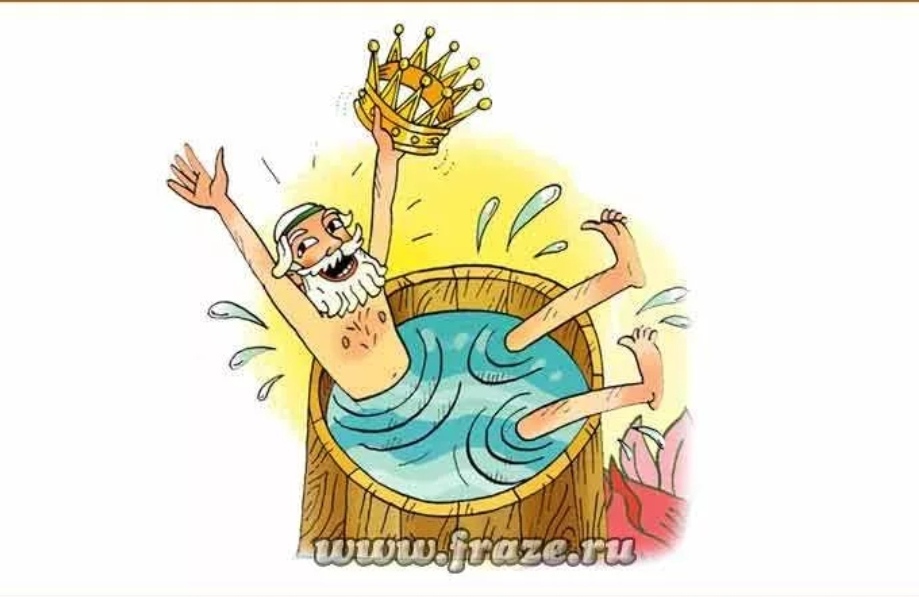 Оно возникло внезапно, когда он сидел в ванне. Вне себя от радости Архимед выскочил из ванны и побежал по улицам Сиракуз, повторяя: «Эврика!» (Нашел!).