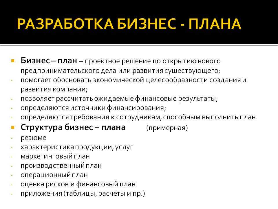- Определение целей, составление предварительного плана работы. Это может быть получение кредита, частных инвестиций. При этом учитываются требования, которые предъявляются отдельными учреждениями.
