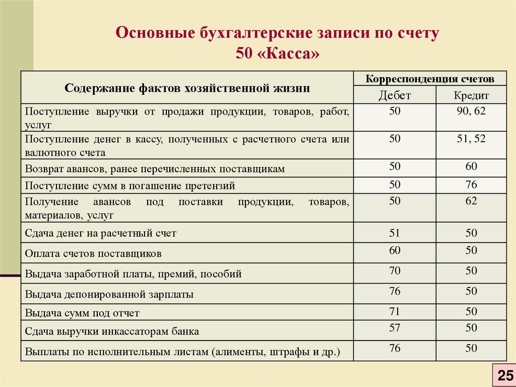 - При получении наличных дебетовать наличные.