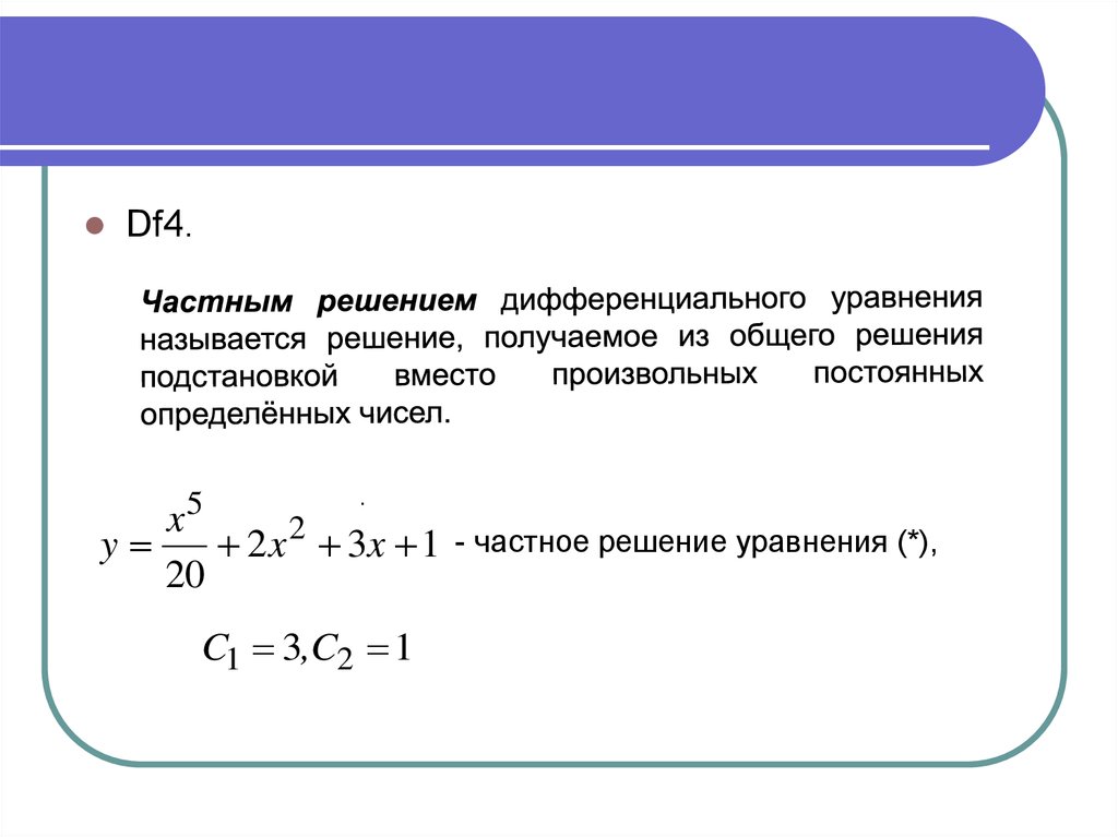Частное решение дифференциального уравнения получается путем задания дополнительных условий, как правило, в виде начальных или граничных условий.