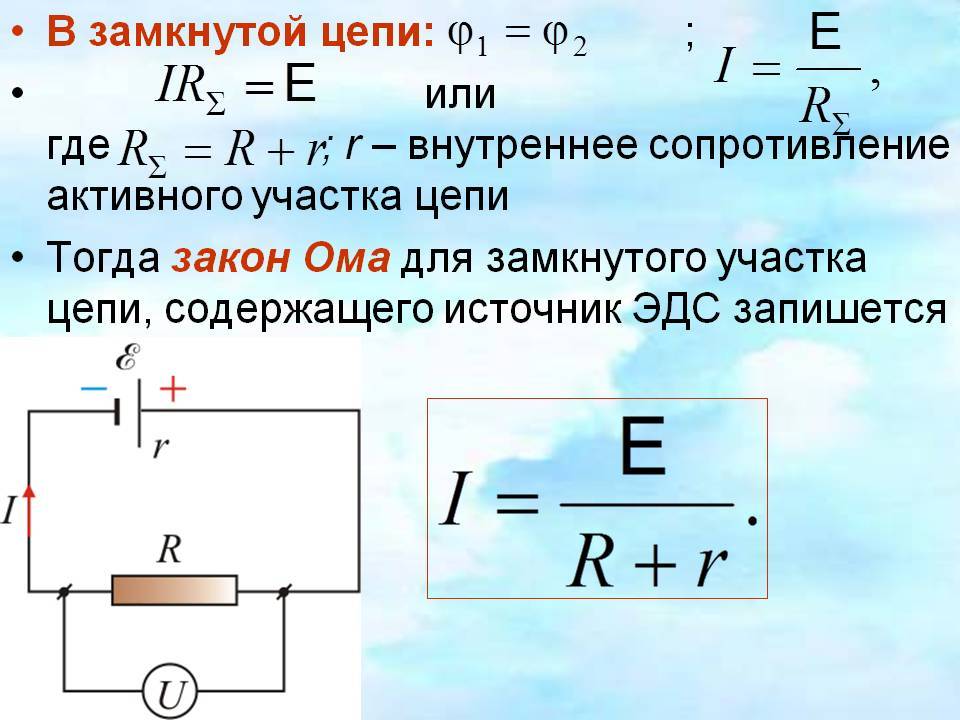 Обычно закон Ома для замкнутой цепи записывают в форме: