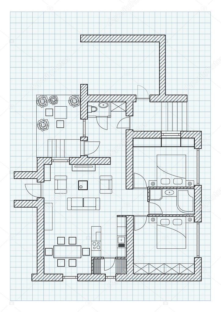 Получилось? Не может не получиться. Хотя с первого раза можно испортить не один лист тетрадный. Поэтому очень часто можно встретить планы архитекторов на кальке. Удобно вносить исправления.