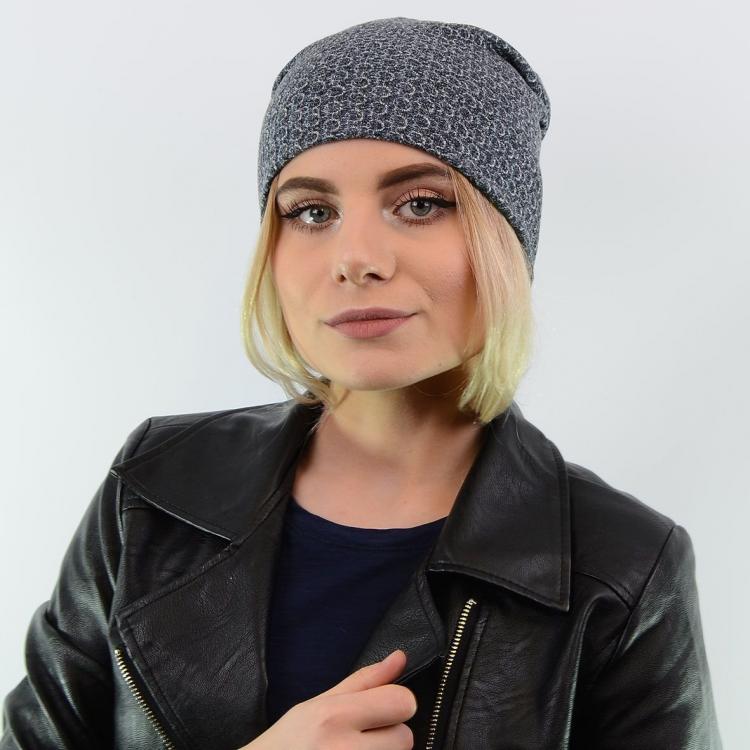 Шапка (тыковка) с люрексом, одинарная, средней высоты, небольшой объем, с отворотом.