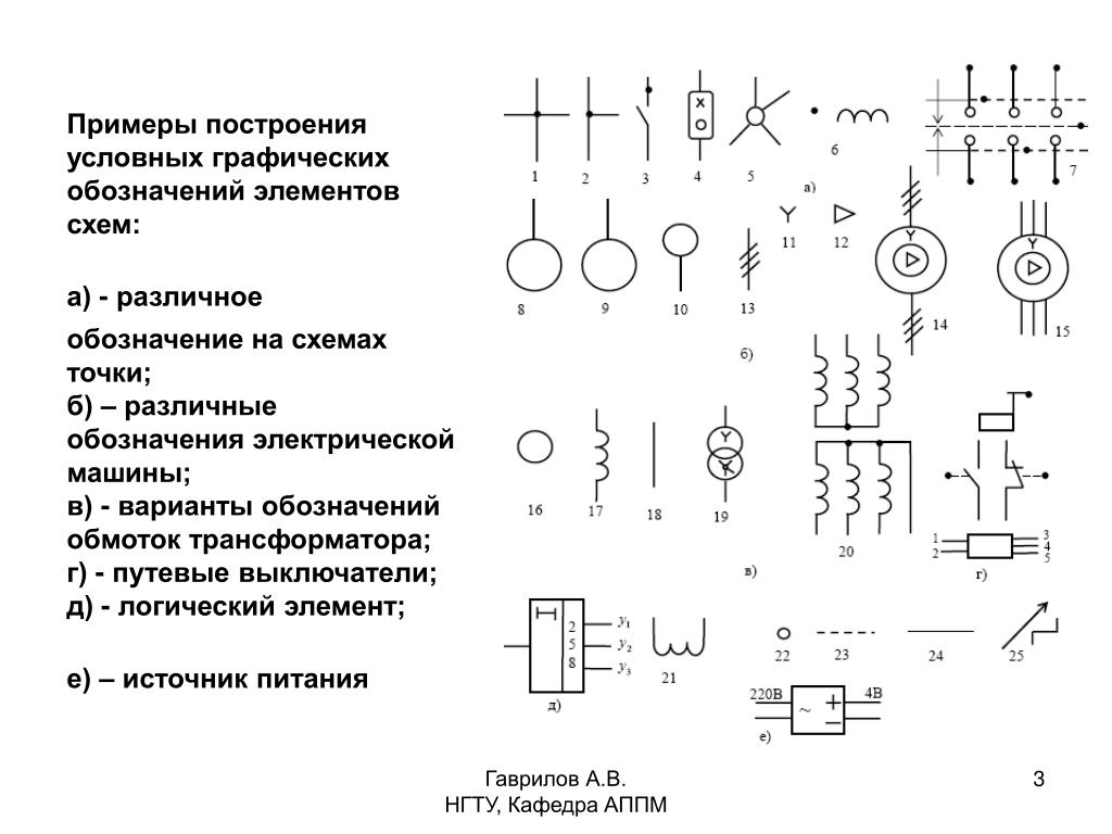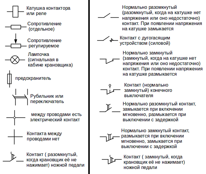 Нижеследующая информация содержит подробные сведения об основных символах, используемых для обозначения компонентов на схемах и схемах электрической передачи, переключения, управления и защиты.