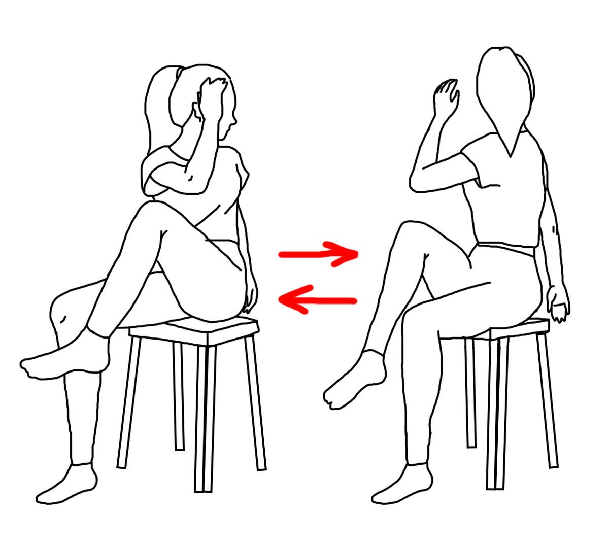 - Теперь снова прижмите локти к бокам, сожмите пальцы в кулак и делайте вращательные движения кистями рук поочередно в разные стороны.