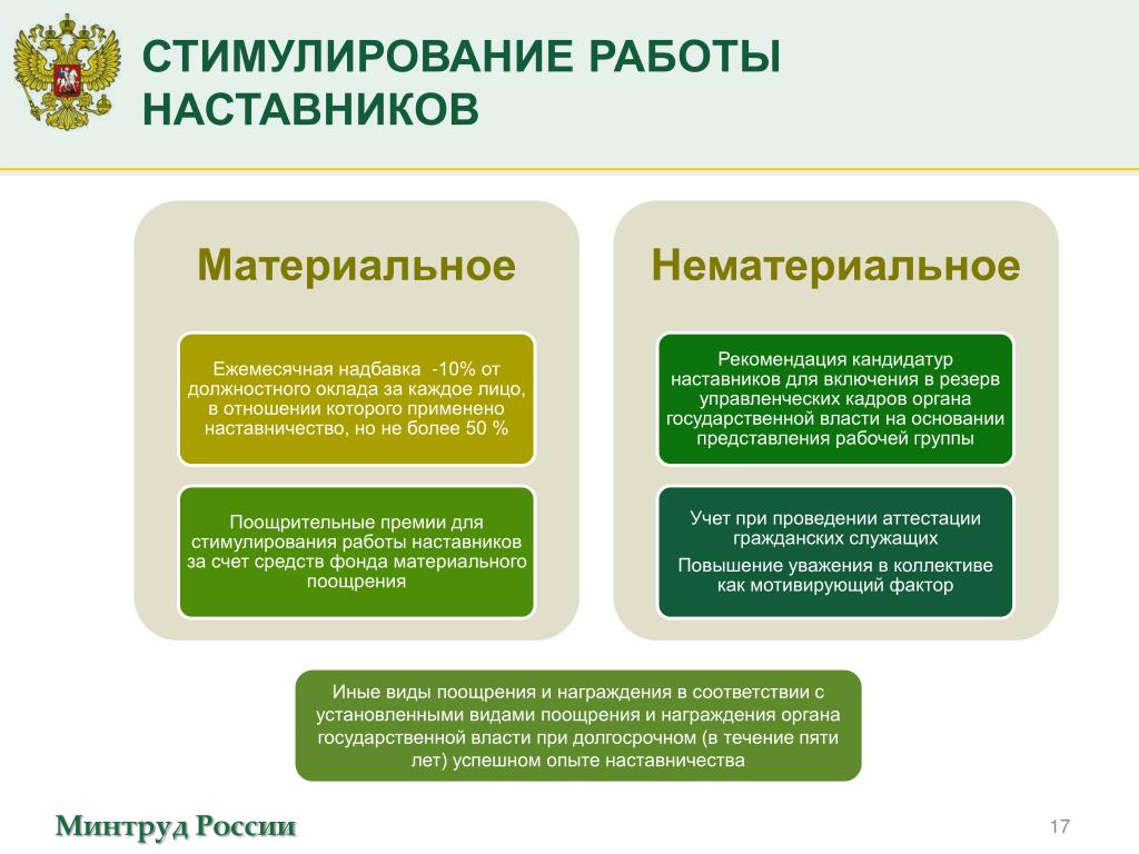 В заключение скажем, что нематериальная мотивация сотрудников, основанная на положительных эмоциях и корпоративном духе, может оказаться мощным двигателем роста вашей компании. А главное — она почти не требует денежных вложений. Нужно только ваше внимание к потребностям сотрудников и готовность поощрять их труд.