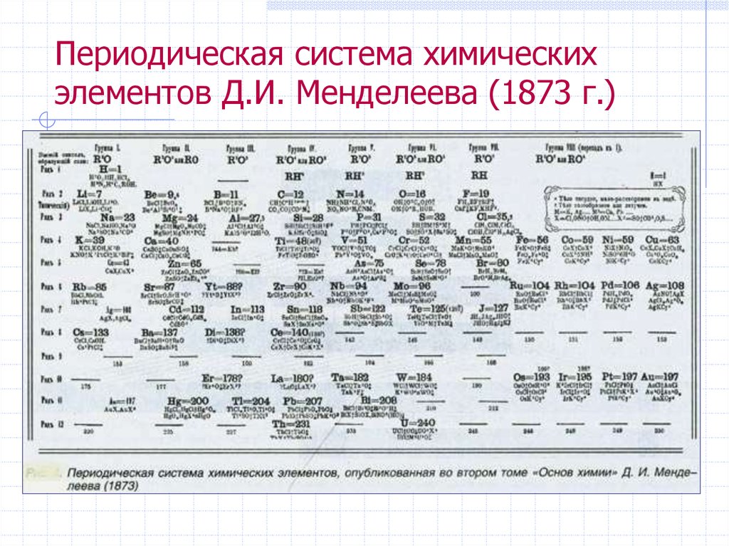 В 1869 году русский химик Дмитрий Менделеев разработал совершенно новый метод классификации элементов, который он назвал «периодической таблицей». В том же году немецкий ученый Лотар Мейер независимо предложил те же идеи. Эта договоренность пролила свет на большое обобщение, известное теперь как Периодический закон.Дмитрий Менделеев включил все 65 элементов, известных в его эпоху по их атомному весу и химической валентности. Такие закономерности очень упрощают изучение химии. Тщательное изучение одного элемента в группе элементов значительно упрощает изучение других членов группы, поскольку многие свойства и химические реакции элементов схожи.