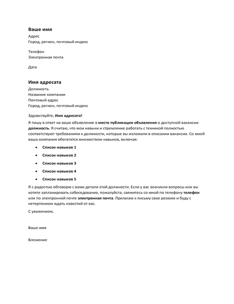 Это еще один хороший пример стандартного формата сопроводительного письма.