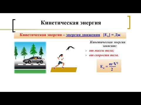Кинетическая энергия — энергия механической системы, зависящая от скоростей движения её точек. Часто выделяют кинетическую энергию поступательного и вращательного движения. Единица измерения в системе СИ — Джоуль. Более строго, кинетическая энергия есть разность между полной энергией системы и её энергией покоя; таким образом, кинетическая энергия — часть полной энергии, обусловленная движением.