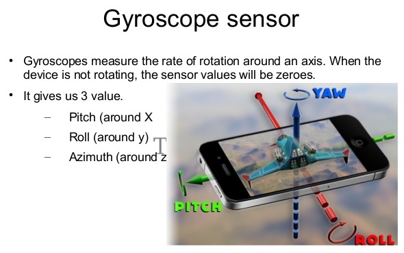 Гироскопические датчики могут контролировать и управлять положением устройства, ориентацией, направлением, угловым движением и вращением. К примеру, популярные приложения Pokemon Go и Google Sky Map, используют датчик для определения направления.