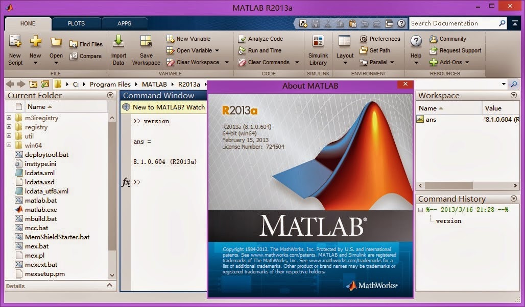 В соответствии с нашим выбором, сделанным во время процедуры установки, на рабочем столе будет создан ярлык MATLAB.
