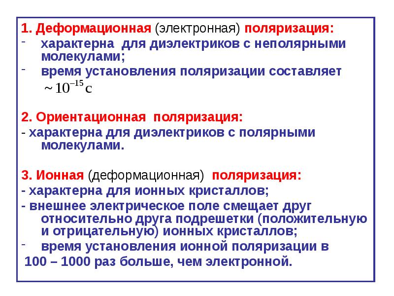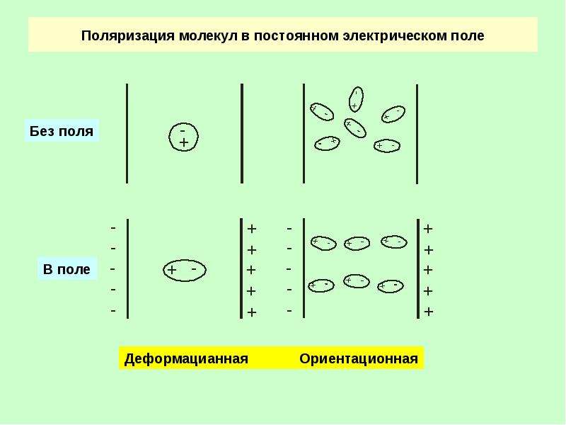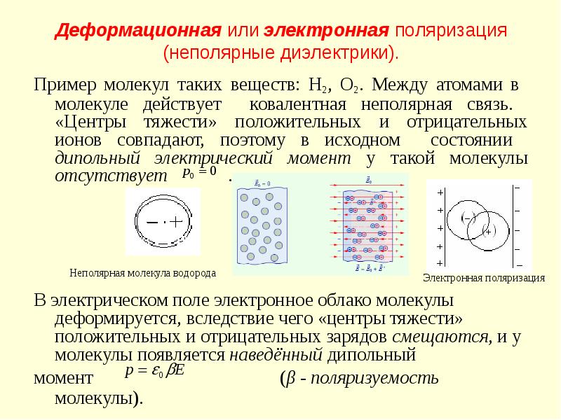молекул обусловлена смещением в поле E атомов разного типа в молекуле (что связано с несимметричным распределением
