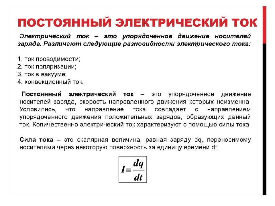 Электрический ток, который течет непрерывно в одном направлении, называется