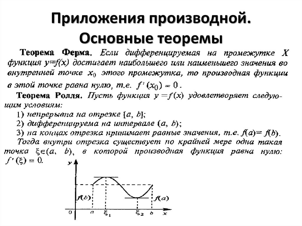 Рассмотрим функцию f: [a, b] → R, f: [a, b] \ rightarrow \ mathbb {R}, f: [a, b] → R, где a, b∈R a, b \ in \ mathbb {R} a, b∈R. Как правило, производная определяется только для значений в интервале (a, b) (a, b) (a, b). Пусть c∈ (a, b) c \ in (a, b) c∈ (a, b) – число, при котором должна измеряться скорость изменения.