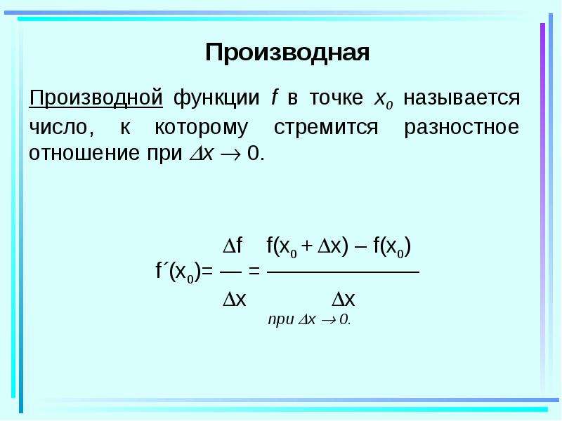 приращения аргумента Δ приращения Δ f ( 3 производной точке f ( в Производная в точке Приращением аргумента Δ f ( называется разность между значением аргумента в точке и любой другой точке из некоторой