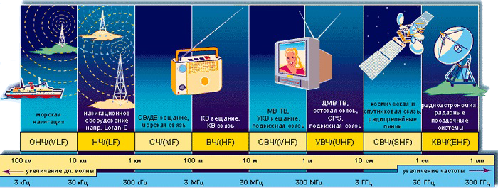 спектр . Радиоволны используются для беспроводной передачи звуковых сообщений,