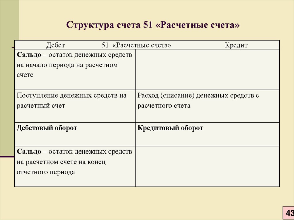 Характеристика счета 51 «Расчетный счет»