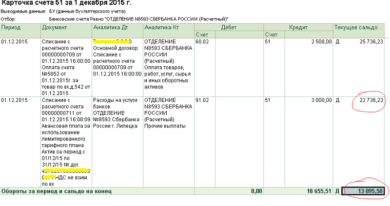 Анализ счета 51