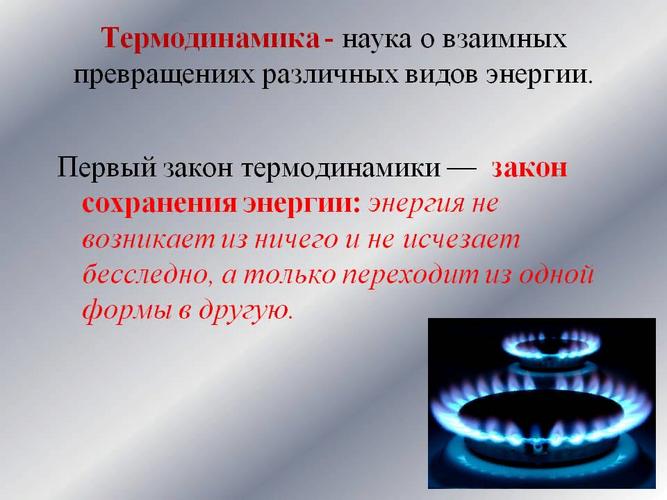 В нем говорится, что тепло является формой энергии и, следовательно, подчиняется принципу сохранения, то есть оно не может быть ни создано, ни уничтожено.