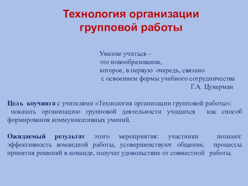 Обучение без торможения. — М.: Изд-во Эксмо; Развитие учебной самостоятельности // Цукерман Г.А., Венгер А.Л. — М.: ОИРО.