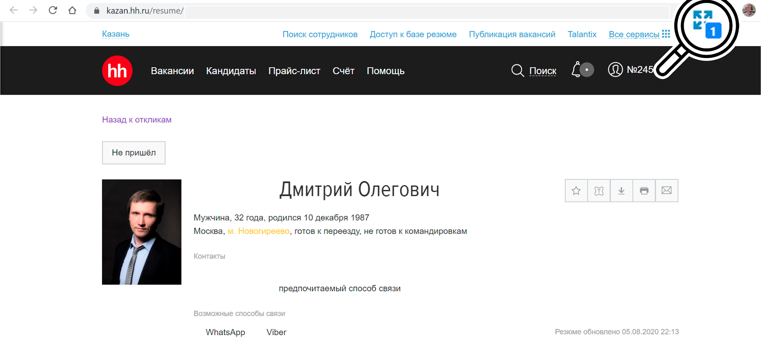 Что видят HR в отклике на сайте hh?