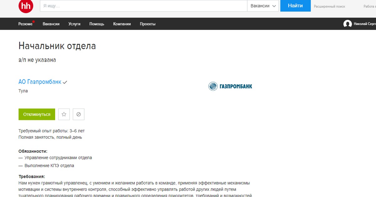 Как откликаться на вакансию в hh.ru