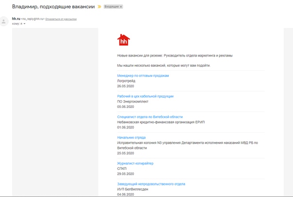 Приложение удобно тем, что достаточно подписаться на вакансии, и они сами будут приходить Вам на почту.
