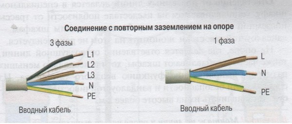 Для упрощения процесса монтажа проводки используются кабели с двумя или четырьмя жилами. Линия защиты тут соединяется с нейтралью. Буквенный индекс провода – PEN, где PE обозначает заземляющий, а N – нулевой проводник.