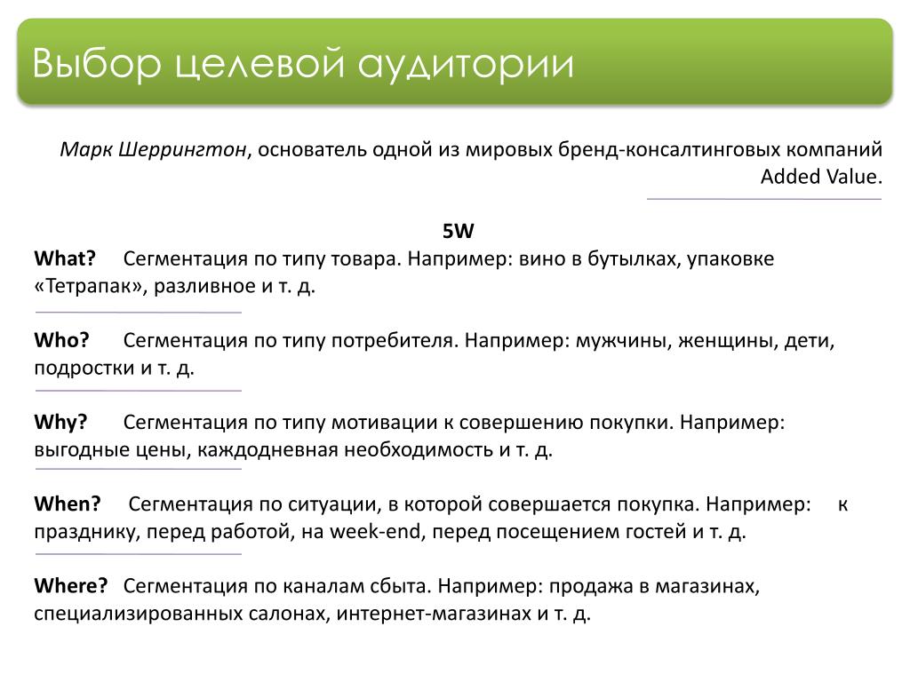 Помните: «товара для всех» и «услуги для каждого» на рынке высокой конкуренции просто не может быть.