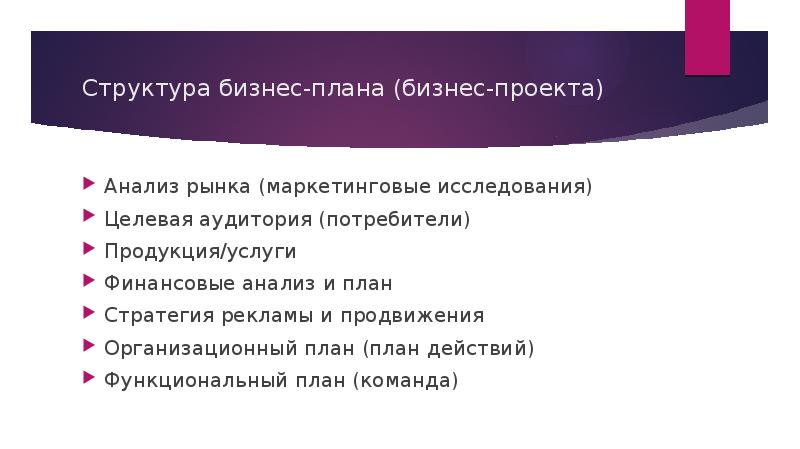 Бизнес-план представляет собой план или программу, по которой осуществляются бизнес-операции, а также действия фирмы. В таком документе должна быть прописана информация о компании, предоставляемых товарах и услугах, производстве, планируемых рынках сбыта, маркетинге, а также организации различных операций и анализа их эффективности.