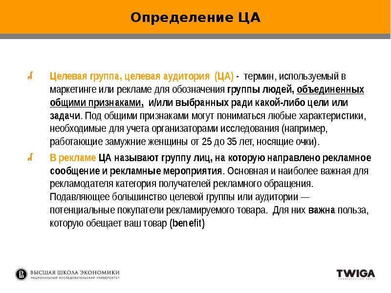 Целевая аудитория (target group, target audience) − группа людей (B2C) или организаций (B2B) с определенными характеристиками, которые потенциально могут быть вашими клиентами или уже ими являются.