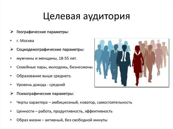 - Психографические характеристики: стиль жизни, особенности личности, черты характера, жизненная позиция, доминирующие мотивы поведения, образ жизни, система ценностей, покупательские привычки.