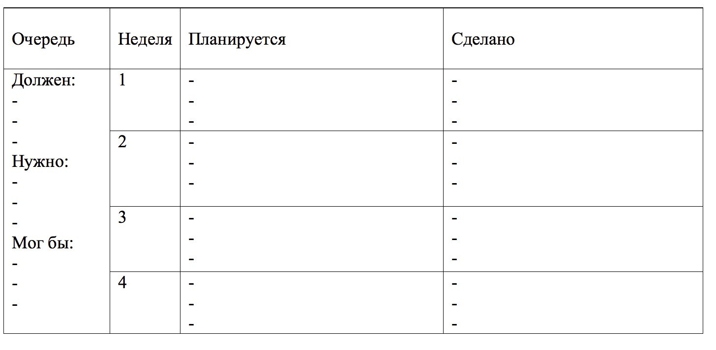 1. Заполняйте ежедневный список дел каждый день в течение месяца