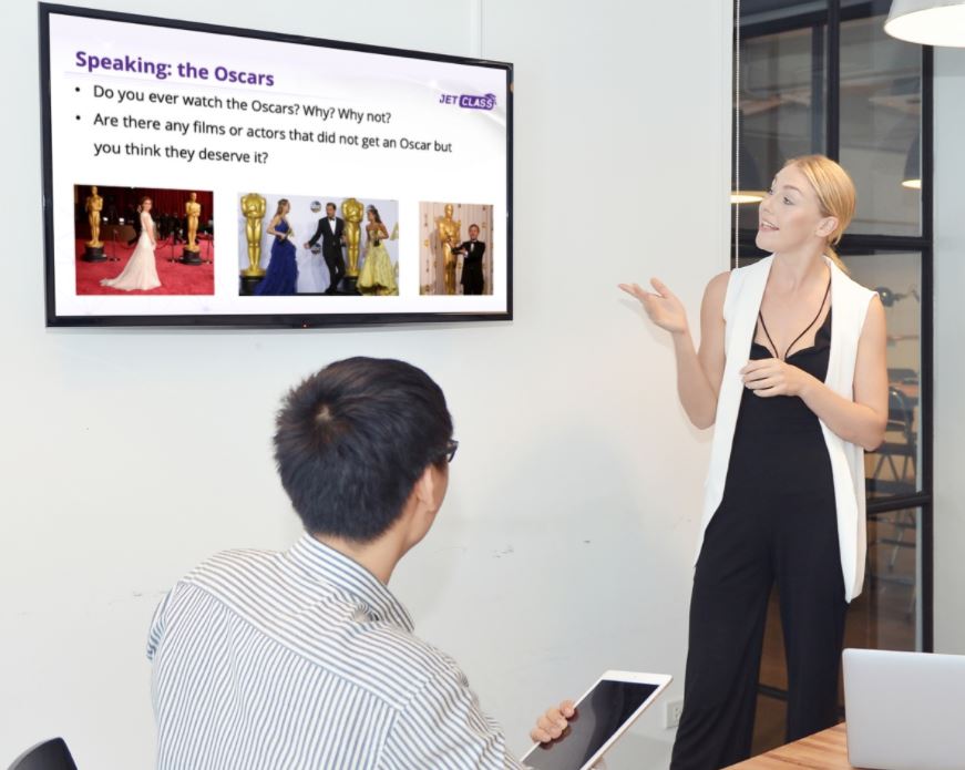Дистанционно или очно. Эксперты Denis’ School разработали для пользователей новую цифровую образовательную среду JetClass. Регулярные занятия с преподавателем и системная работа по гибкому графику на платформе JetClass позволяет студентам успешно развивать свои языковые компетенции. Все учебные материалы представлены в виде интерактивных презентаций и ситуативных видеороликов, снятых с участием профессиональных актёров-носителей языка. Основное время занятий c преподавателем уделяется развитию навыков разговорной речи и снятию языкового барьера.