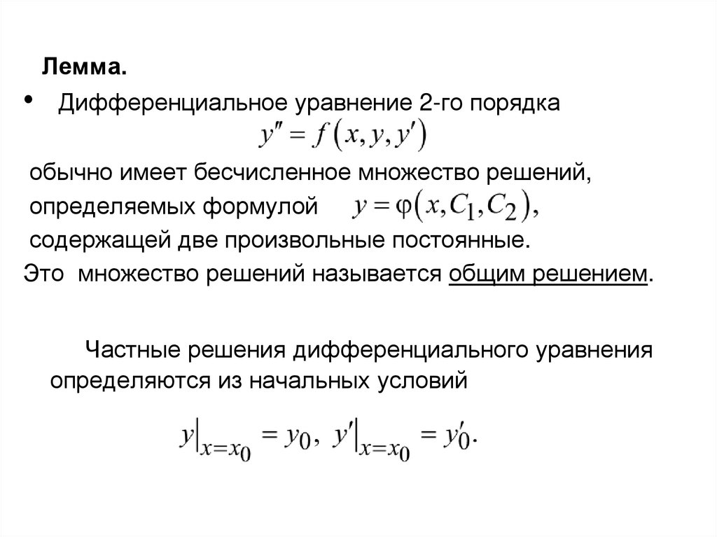 В дифференциальных уравнениях (ДУ) второго порядка обязательно есть вторая производная у”, но отсутствуют производные высших порядков.